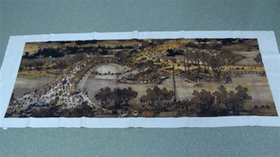 十字绣珍品《清明上河图》 规格2米*70cm 品牌黄梅挑花 本十字绣珍品是以现代十字绣表现中国古代名画,全手工精心绣制,此绣品是清明上河图中的一部份,表现细腻、色泽丰富、过渡自然、质感强烈,乃当代刺绣艺术之最高境界,此作品历时2年完成。