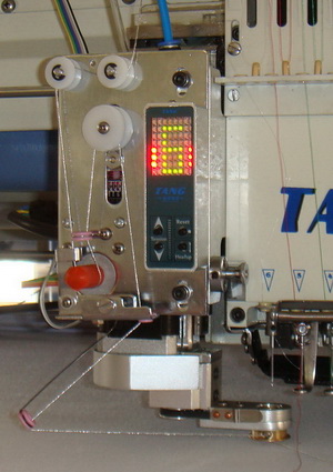 由我公司自行研发生产的智能绳绣装置,可使各种类型及品牌的普通平绣机实现特种绣功能。系列产品中有850转、1000转和1500转的三类产品可供选择。绣品质量和速度优于盘带特种整机,且对绳子的适应范围大于盘带特种整机。适用于所有的新、旧平绣机器,适用于TAJIMA、SWF及所有的国产电控。装机厂和绣花厂可直接加装,无需更换和更改原绣花机电控。