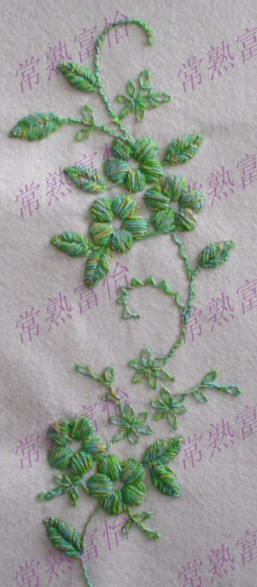 花式纱绣、绳绣、锯齿绣、捆绑绣、包梗绣、反底绣、并股绣、仿手绣等。