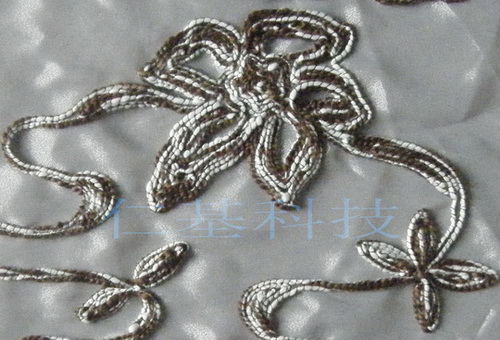 由我公司自行研发生产的智能盘金绣装置,可使各种类型及品牌的普通平绣机实现特种绣功能。系列产品中有850转、1000转和1500转的三类产品可供选择。绣品质量和速度优于盘带特种整机,且对绳子的适应范围大于盘带特种整机。适用于所有的新、旧平绣机器,适用于TAJIMASWF及所有的国产电控。装机厂和绣花厂可直接加装,无需更换和更改原绣花机电控。