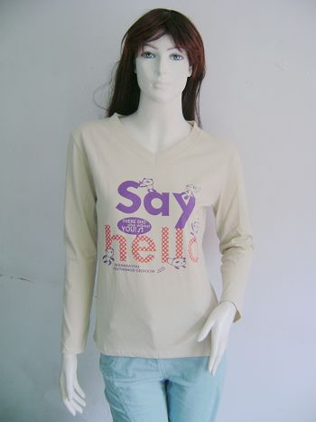 你好!我司现已生产女式纯棉V领长袖12000件。款式新颖配独立包装.可混批出货.现1000件7.5元。如有质量问题我们包换! 详情可直接到我公司网站查看或直接到我公司洽谈!