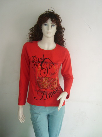 你好!本工厂主要生产男女式T恤,现刚生产出6万件、时尚女式长袖。圆领,均码,,图案新颖,质量保证。现500件6.5元。可登陆网站查看图片,欢迎亲自前看货拿货!!
