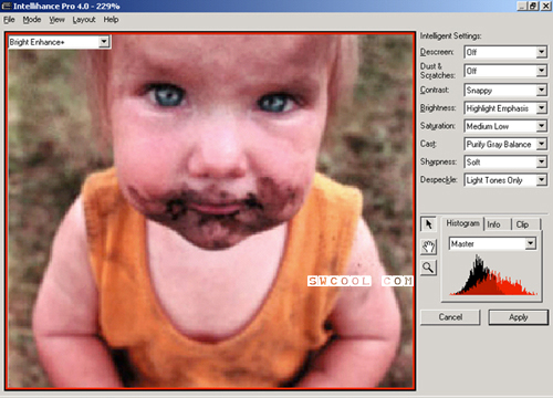 5、你完全可以不作任何调整,只要按下"Apply"键就可以了。仔细了解下面的调整参数,慢慢地熟练以后,你就可以尽情玩转Intellihance Setting选项。