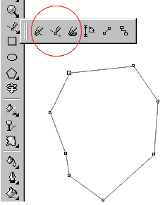 第一步,如图,用Bezier工具在页面上定出若干节点,节点间的直线段就构成了一个不规则图形。