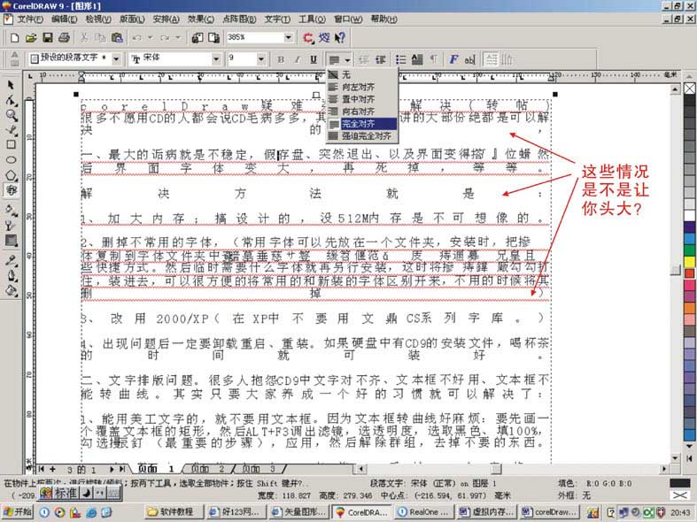 一、 经常在坛子上看到有人抱怨说用corelDRAW的文字排版很不好用。本人对此不以为然。只能说有相当一部分人在使用corelDRAW排版时没有找到窍门或者没有将corelDRAW功能吃透,导致部分人对corelDRAW的文字排版功能怨声载道。其实corelDRAW在这方面的功能非常强大。