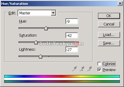 10、在“Hue/Saturation”(色调/饱和度)中作如图8所示的调节,单击OK按钮完成调整。