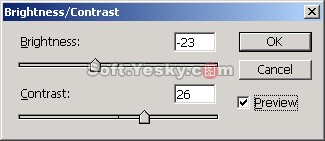 12、用步骤9的方法再增加一个新的“Brightness/Contrast”(亮度/对比度)调整图层,并在出现的对话框中作如图10所示的设置。