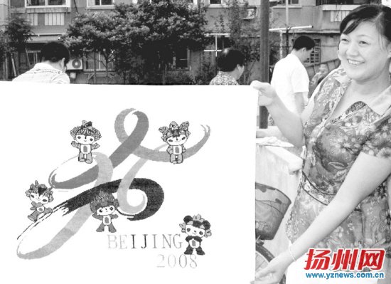 仪征市区的王女士近日向笔者展示刚刚用钩针完成的“相约北京2008”十字绣。十字绣由5个福娃、北京2008等图案组成,表达了一位普通市民参与北京奥运会的激情。