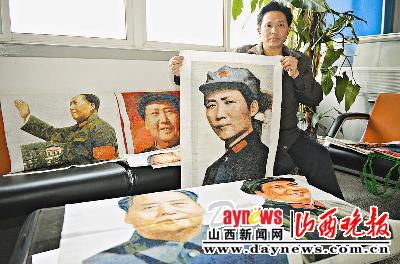 谈起为何会以这种方式纪念毛主席,44岁的任俊平激动得像个孩子。“我以前当保险公司推销员时,跟着客户学了一些收藏知识。从2002年开始收藏毛主席的瓷像与琉璃像,现在已有70多尊。这几年流行十字绣,儿子建议说,瓷像难免会遭磕碰,不如绣成十字绣像,可以永久留念。”