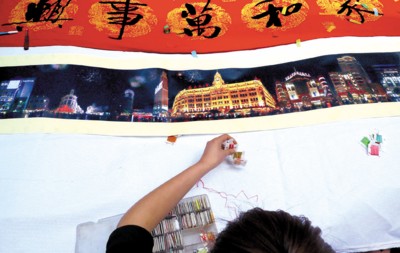 晨报记者陈征摄影报道 昨天的南京路步行街永安百货门前,游客争睹了一项千人共创的世博民间作品的起步。一幅由上海摄影爱好者创作的5.5米“璀璨南京路全景图”成为了这项需千人共同创作完成的十字绣工艺作品的素材。据组织创作这件千人作品的永安员工介绍,他们将于9月底在刺绣专家的引领下完成这件意义特殊的作品并献给世博会。