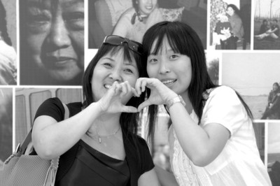□昨天,参赛的女白领与母亲合手摆出爱心造型。 活动主办方提供图片