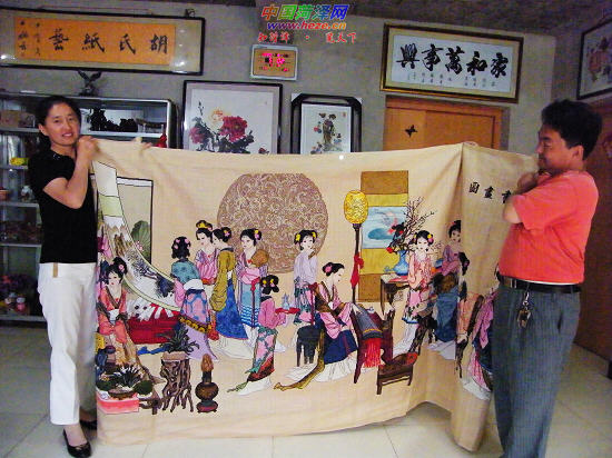 中国菏泽网消息 了解十字绣的人都知道,有一幅令绣图者望洋兴叹的作品——著名的《琴棋书画图》。不少人虽鼓起勇气动手去绣,总是半途而废。家住牡丹区北城办事处益民社区的回族下岗女工马旺丽,却在病中耗时一年完成了一幅长4米宽1.5米的十字绣作品《琴棋书画图》。