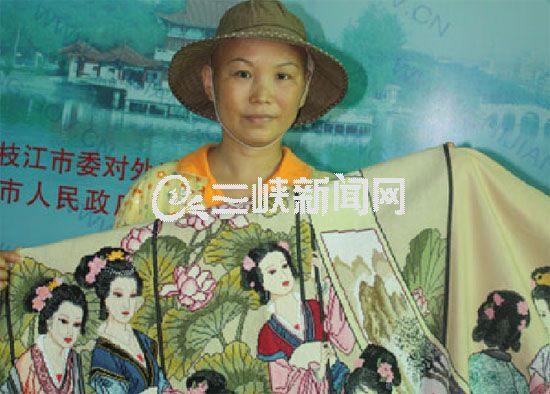 儿子因骨髓炎留下后遗症,右腿比左腿短22厘米,为帮儿子筹集治疗费,患有乳腺癌的她拼命刺绣,就在化疗期间,视力模糊也不停歇。昨日,这位伟大的母亲希望为这幅巨型十字绣找到一个好心的买家,以解燃眉之急。