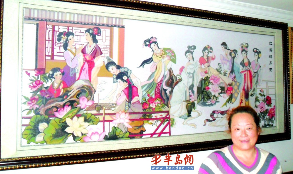 杨女士自豪地告诉记者:“这幅《红楼群芳图》我只用了2个月10天就绣好了。”