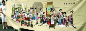 今年,吕女士花了4个月时间绣成了一幅3.6米长、1.5米宽的大幅十字绣作品《琴棋书画图》。“很多人都不敢相信这么快能绣完。”吕女士说,她喜欢看小强热线,看到有人带着自己的绣品上电视,说绣了一两年,“我这么大幅的才绣了4个月,所以去展示了一下。”