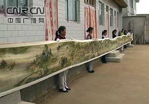 有了这个念头,毛小平和妻子丁芳珍一商量,就立刻花了近万元从福建定制了长22米、宽0.7米的《清明上河图》图案。2007年7月,图案拿到了手,正在兴头上的夫妇俩却傻眼了: