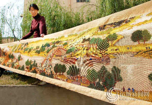 近日,运城市民闫女士耗时一年半,用78种颜色、大约120万根彩线,绣了一幅长6.52米、宽0.7米的《清明上河图》。 闫女士说,起初,她看到身边的一些朋友都喜欢玩十字绣,于是也学了起来,没想到后来渐渐爱上了十字绣。手法熟练之后,她萌生了绣一幅“名作”的想法,最后决定绣《清明上河图》。据她介绍,这幅作品最难绣的就是拱桥上的人物,人物多且看起来杂乱无章,再加上人物服装颜色丰富,仅换线就得费很大工夫。 如今,越来越多的人都把玩十字绣当作一种修身养性、调节心情的好办法。
