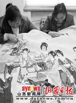 11月4日,在临猗县KS十字绣坊,绣工正在精心绣制作品。