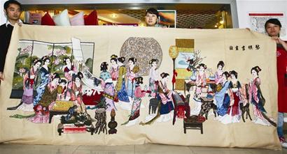 据介绍,它是安徽女孩小马绣的,送到该店装裱。小马去年从武汉某高校毕业后一直未找工作,租住在鲁磨路。今年4月初,她利用自己小时起自学的十字绣技艺,开始在家绣这幅《仕女图》,耗时7个月,用了上百种颜色的丝线,绣了40万针。