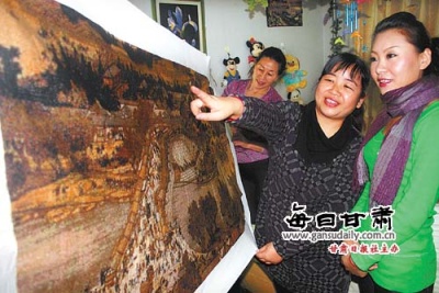 12月4日,兰州市业余刺绣爱好者贾彩霞向来访者介绍自己的“十字绣”作品《清明上河图》。贾彩霞从小就喜欢刺绣,下岗后的她更是潜心学习“十字绣”技法,不少作品也为她带来了一定的经济效益。这件历时545天完成的2米长卷《清明上河图》,是她今年较为大型的一件新作