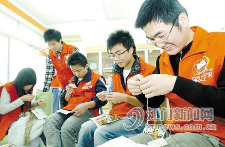 12月26日,记者来到十字绣培训室看到,20多名义工正在专心致志地绣十字绣,其中有不少男生。