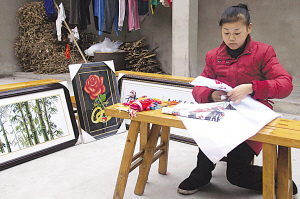 眼看着家里入不敷出,她想,反正自己做过缝纫工,刺绣最拿手,完全可以靠手艺筹集治疗费啊!就这样,半年前她开始在家做十字绣,红月乐观地告诉记者,她已完成3幅“大作”:“竹报平安”,“人生之福”和“幸福承诺”,这3幅作品分别需要两个月才能完成,红月绣好后还特别到县城进行装裱,希望能“卖”出一个好价钱。她还说,如果有人需要刺绣加工,她也愿意,她现在还有一些稍小点的十字绣作品。