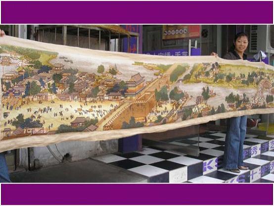 《清明上河图》是中国十大传世名画之一,是北宋画家张择端存世仅见的一幅精品,张择端具有高度的艺术概括力,使《清明上河图》达到了很高的艺术水准。《清明上河图》丰富的内容,众多的人物,规模的宏大,都是空前的。《清明上河图》的画面疏密相间,有条不紊,从宁静的郊区一直画到热闹的城内街市,处处引人入胜。。属一级国宝。这幅KS十字绣,宽70厘米,长652厘米,绢本设色,是张择端原作《清明上河图》的中心部分,是由一座虹形大桥和桥头大街的街面组成。《清明上河图》的中心是由一座虹形大桥和桥头大街的街面组成。