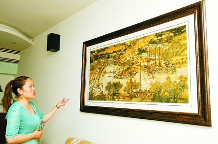 何女士看到了墙上挂的前两个月才绣成的1.78×1.04米的十字绣《清明上河图》。何女士决定在网上发帖,以10万价的格卖给喜欢的人。