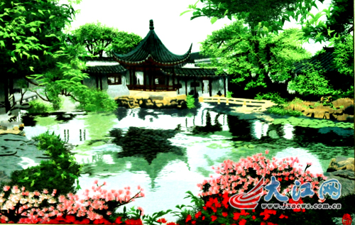 听着老人一番真挚的话语,工作人员被深深地打动。虽然作品征集时间已结束,但表示仍可以接受捐赠,只是图录已上不了。同时歉意的表示由于人手不够,不能随老人去取作品。老人爽朗地说道:“没关系,我就是想表达一份心意,不在意上不上图录。我知道你们忙,我给你们送过来。”半个小时过后,老人果然送来了一幅作品。工作人员打开一看,一幅精美的十字绣作品呈现在众人面前,这是老人与家人花费数月时间才绣出的精品,画面中,繁花簇新,草塘袅影,亭阁幽曲,深翠浓酽,一派秀美如诗般的江南园林,在场的人都赞叹不已。