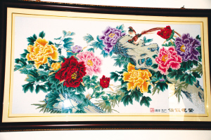 《红楼群芳图》《花开富贵》……酷爱十字绣的赵大爷尤其喜欢绣大幅作品,每幅都需要数月才能完成。如:反映金陵十二钗的《红楼群芳图》,神态各异的红楼人物在赵大爷的精心塑造下韵味十足。这整幅作品是赵大爷耗时4个月、超过160万针完成的得意之作。赵大爷告诉记者,将绣好的大幅作品装裱后挂在墙上,每每家中来客人时便讲授其中技艺,自己特有成就感。