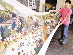 天津北方网讯:提起十字绣,人们往往会当作妇女闲暇时的一种女红。但本市有这样一位男子,把工作之外的时间都用来绣十字绣,坚持整整一年半,近日完成了一幅长6.52米的清明上河图。