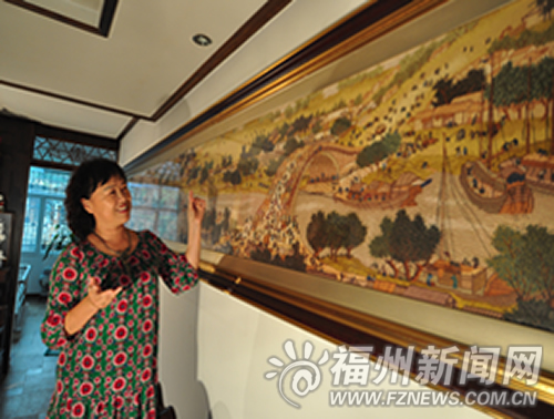 福州新闻网讯 6米长的书画不少见,可6米长的十字绣却不多见。4日,记者有幸在林秀华女士家中看到了6米长的十字绣作品――清明上河图。
