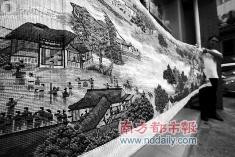 11月27日晚,照常6时下班,高建伟回家拿起针线,坐在案头将最后一个红章绣完。至此,一幅长3米、宽0.75米的《清明上河图》(局部)十字绣完工了。这幅十字绣耗时两年半,牺牲这名白领所有的业余时光。