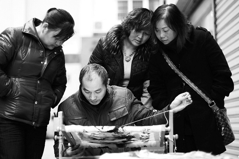 初次见到张浩,他给我的印象是一脸秀气。妻子在十字绣店铺里招呼客人,他在绣架上为顾客作示范,手中的针线来回穿梭于绣布之上,让人禁不住感到疑惑:本来是女性的“专利”的十字绣,如何让一个大男人如此痴迷呢?
