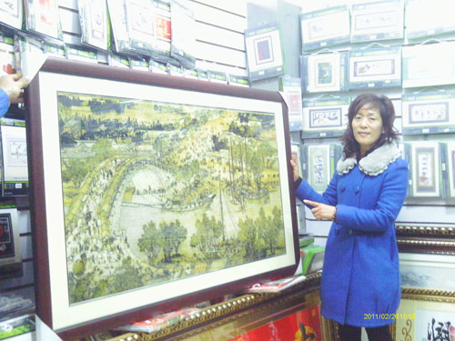 至于为什么会想到绣这幅《清明上河图》,宋君华说,这是她给朋友的一个承诺。5年前的一天,宋君华和自己的几个朋友在一起聚餐。在餐桌上,一位朋友聊起了当时在国内外市场上方兴未艾的十字绣。本就对此大有兴趣的宋君华一下子找到了知音,大家聊得热火朝天。酒酣面红之际,一位朋友对宋君华说,“你不是喜欢刺绣吗,帮我绣一幅好不好?”听到这个请求,一向豪爽的宋君华没说二话,立马答应了下来。