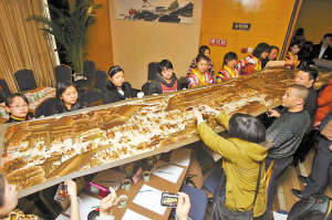 昨天上午,沙坪坝,一幅长18.8米、宽1米的精美十字绣作品《清明上河图》在此进行首展。本报首席记者 罗伟 摄
