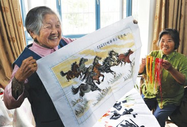 2009年,新中国成立60周年之际,88岁高龄的奚月娥耗时数月,绣了一幅神采飞扬的八骏图,向共和国的生日献礼,还亲自送到了居委会办公室。