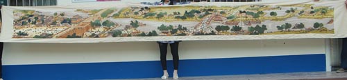 11月6日讯 临沭县锦华苑巧女高志彩从事十字绣已有5年,主要绣制《国色牡丹》、《源远流长》一类的艺术品。她闭关两年绣成的长6.5米的《清明上河图》,绣工细致,惟妙惟肖,价值10万多元,在临沭县目前只有这一幅。