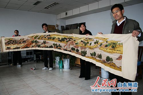 11月7日,一幅令人叹为观止的6.5米长纯手工十字绣作品《清明上河图》在山东省德州市首次面世,这是该市某单位临时工张连英女士花了两年多的业余时间,一针一线绣成的。