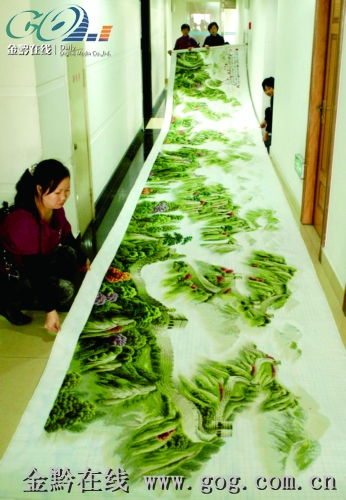 昨天下午,家住遵义的李文珍向记者展示她历时2年时间绣出的一幅长达10米的“盛世华图”时,站在一旁围观的人忍不住惊叹。