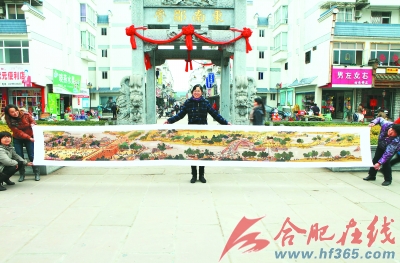 12月6日,休宁县海阳镇桂花树巷居民杨志英女士经过15个月的精心绣制,一幅长6.12米,宽0.75米的十字绣长卷《清明上河图》终于完工,在休宁状元广场展示给市民观赏。据杨女士介绍,其早先从事裁缝工作,五年前开始接触十字绣,绣过梅、兰、竹、菊、“家和万事兴”等小件十字绣。“后来有了绣长卷的想法,《清明上河图》光底料和彩线就花了1600多元,能够在15个月内绣成,自己也没有想到!”杨女士说。