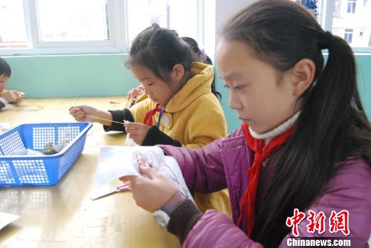 12月16日,侨乡福建古田县湖滨中心小学“十字绣”课上,孩子们正认真地绣着十字绣作品。