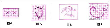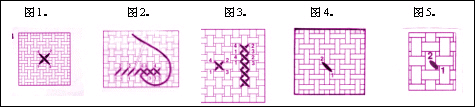 十字针要与图中每一方格相对应。(图1)横排十字针可以采用来回绣的方(图2)。而竖排十字针可按(图3)所示进行刺绣。