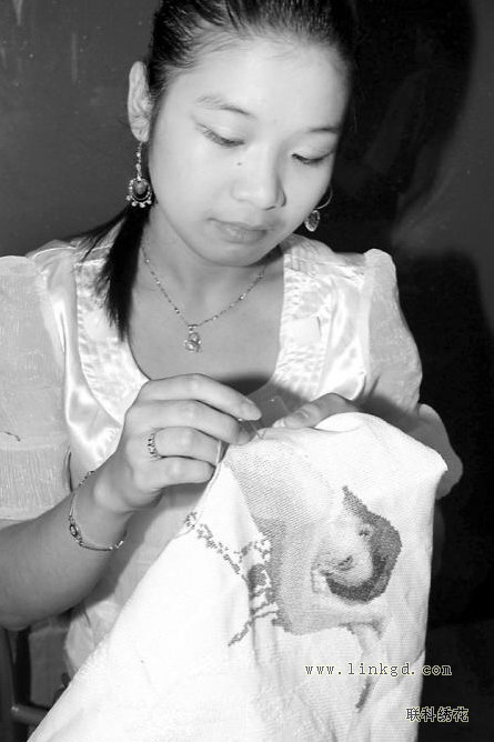 以后近一个月的时间里,小邱有空就绣,整幅图大约用了40多种丝线,才完成了她最喜欢的一张婚纱照。被朋友看到后,一传十十传百,周围的许多人都挑出一些自己比较满意的生活照,甚至拿出孩子的满月照请她来绣。
