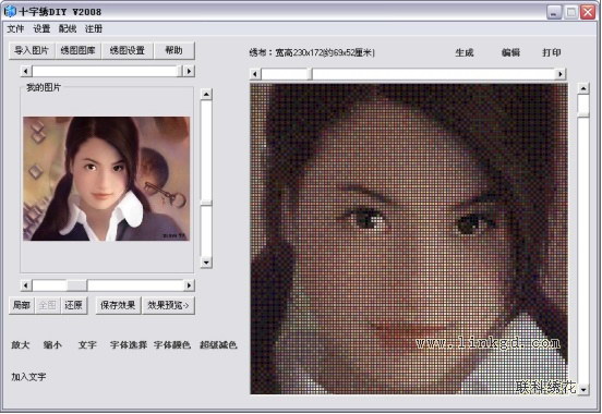 十字绣DIY 2008可以将你的照片做成十字绣图!只要十种颜色就能获得逼真效果。