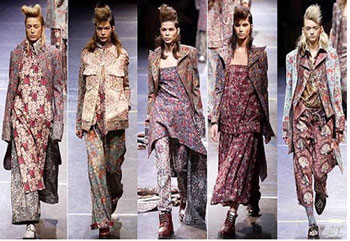 巴黎的时尚舞台上,知名时装设计名家Yohji Yamamoto的作品率先亮相,缤纷多色、奇异的小碎印花触发了Yohji的灵感。缤纷的国画的色彩藏了女人的心事,世事的变迁,女人的眼里已经不再流露悲哀,冷冷的表情,听见丝绸之路上驼铃的轻响了吗?秋季,她们走路,按自己希冀的步伐。 跳脱以往给人的低调沉静、解构包装与稳重色调印象,对于此次大量运用水墨繁花图腾、与一些迷你涡旋花呢的混合,没有特别的意义,只不过是印证我也能玩色彩,并且玩得很有自己味道!