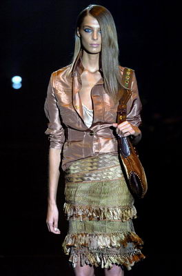 谁有资格称做2005米兰春夏时装周,最受众人瞩目的一场发表会?毫无疑问的,只有Gucci!相对的,由新任设计师Alessandra Facchinetti所主导的Gucci春夏服装秀也在充满不安情绪、令人期待与备受关注的压力下开场。在Tom Ford宣布辞去Gucci创意总监一职后,这位年仅32岁且临危受命的接任设计师,必须统合内部所有的创意发想,延续Gucci昔日的风格与声势。