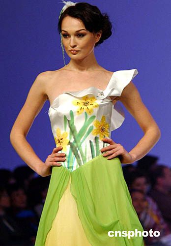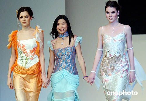 图为澳洲时装设计师Josephine Nathan与模特在掌声中登台谢幕。