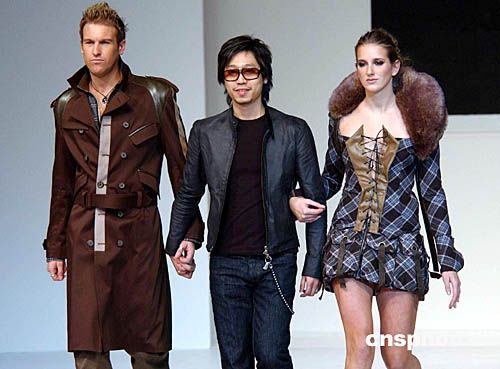 图为香港时装设计师William Cheung与模特登台谢幕。