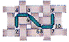 图案上穿过一格的勾边两边的标志不同,或者只有一边有标志,此时使用这种绣法。 将针从一角穿出来扎到格子的中间部分,只绣1/4针。 |